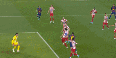 第33分钟,亚马尔禁区内连过数人,随后打门被挡出